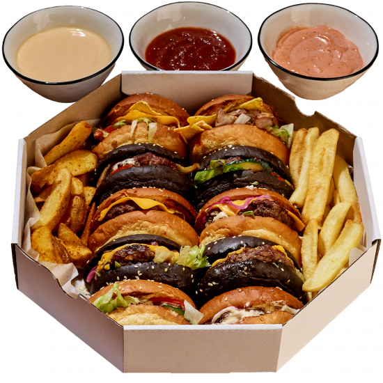 Бургер Mexico Mini, Бургер Vitello Mini, Бургер Texas Mini, Бургер Jack Daniels Mini, Бургер Pear&DorBlue Mini, Картофель-дипп, Картофельные дольки, Соус спайси, Соус сырный, Томатная сальса