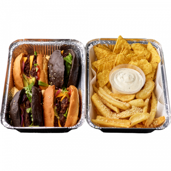 Бургер Джек Дениелс Мини, Дабл Чизбургер, Картофель-дипп, Начос, Соус Ранч, Соус сырный, Сыр пармезан