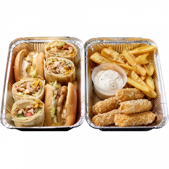 Чикен Чиз Бургер, Шаурма Гавайская, Сыр в панировке, Картофель-дипп, Соус Ранч, Соус сырный, Сыр пармезан