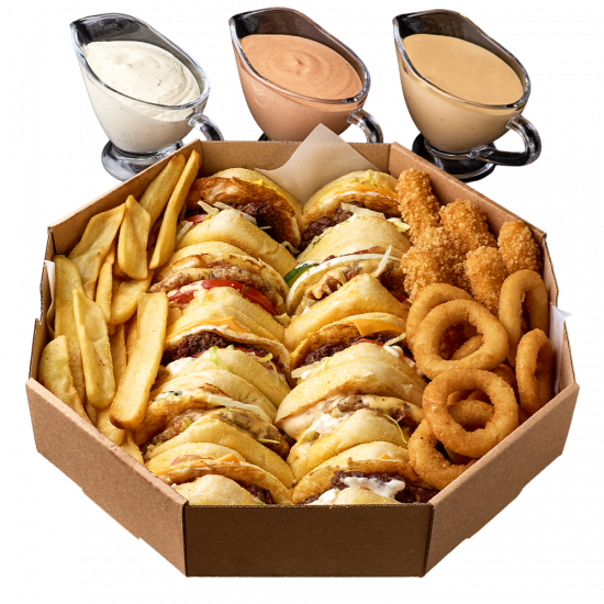 Брекфаст инглиш маффин Чиз, Брекфаст инглиш маффин Чикен, Картофель-дипп, Луковые кольца-фри, Соус Ранч, Соус спайси, Соус сырный, Сырные палочки-фри
