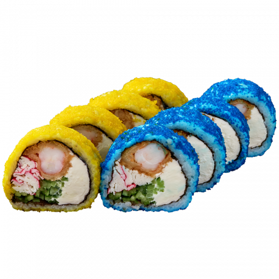 "Снежный краб", Креветка-панко, Авокадо, Икра масаго, Крем-сыр, Огурец, Нори, Рис заправленный