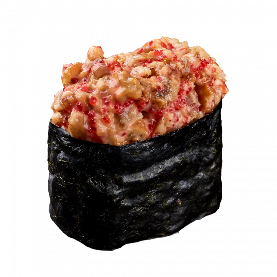 Угорь, Икра масаго, Соус спайси, Нори, Рис заправленный
