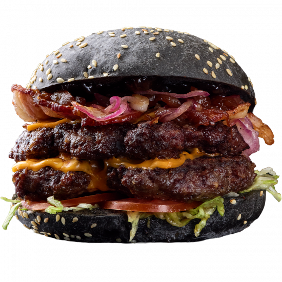 Бекон, Котлета з яловичини, Цибуля карамелізована, Цибуля маринована, Помідор, Пшенична булочка, Соус Джек Деніелс, Сир чеддер, Салат айсберг