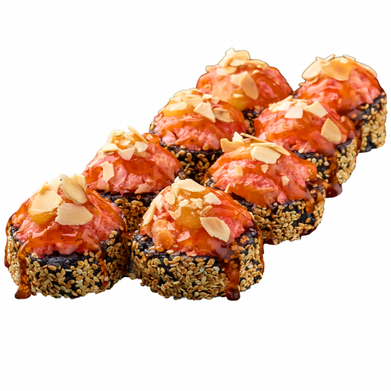 "Сніговий краб", Авокадо, Ікра масаго, Крем-сир, Цибуля зелена, Мигдалеві пластівці, Омлет, Соус Манго-Чілі, Соус світ чилі, Соус спайсі, Норі, Рис заправлений, Салат айсберг