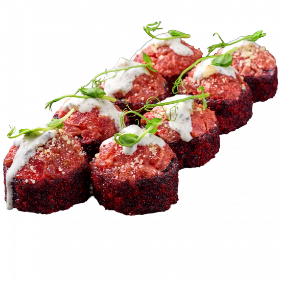 Тунець, "Сніговий краб", Соус світ чилі, Трюфельна олія, Сир пармезан, Соус спайсі, Омлет, Майонез, Цибуля зелена, Крем-сир, Ікра масаго, Авокадо, Норі, Рис заправлений, Мікрогрін, Салат айсберг