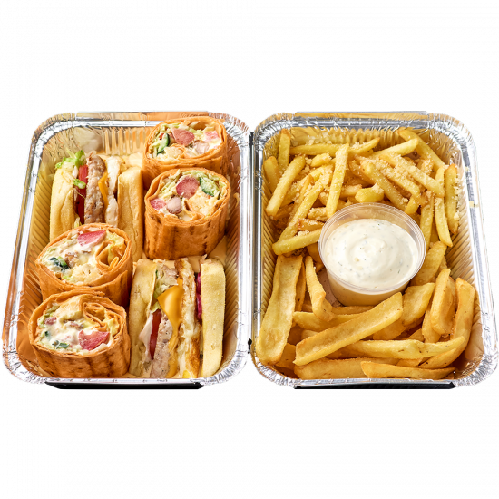 Бурум з куркою, Інглиш мафін Чікен, Картофель-діп, Картопля-фрi, Соус Ранч, Соус сирний, Сир пармезан