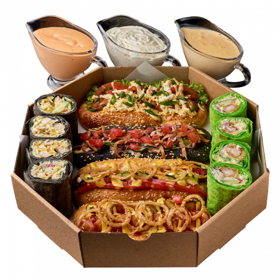 Хот-дог Джек Деніелс, Хот-дог Класичний, Хот-дог Цезар, Хот-дог Чіз, Шаурма БЛЕК з куркою і картоплею, Шаурма з креветкою-панко, Соус Ранч, Соус спайсі, Соус сирний