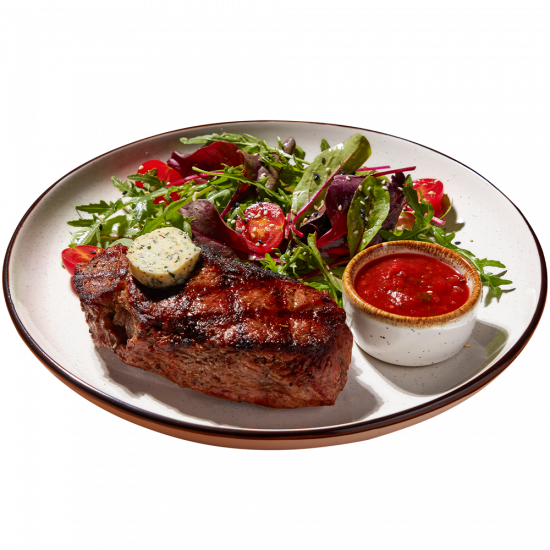 Витримана яловичина, Зелень кропу, Кунжут, Лимон, Оливкова олія, Петрушка, Помідор, Вершкове масло, Томатна сальса, Часник, Бейби-шпинат, Рукола, Салат Булс Блад, Щавель Кривава Мері