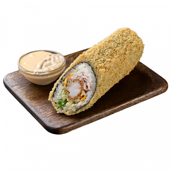 "Сніговий краб", Креветка-панко, Огірок, Соус сирний, Соус цезар, Сир чеддер, Норі, Рис заправлений, Сухарі паніровочні, Темпурний кляр