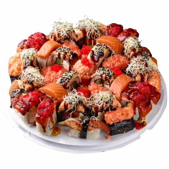 Вірджинія преміум рол, Філадельфія Мікс преміум рол, Нігірі Сякє 4 шт., Нігірі унагі 4 шт., Спайсі сяке 4 шт., Спайсі ебі 4 шт., Флоріда Блек преміум рол
